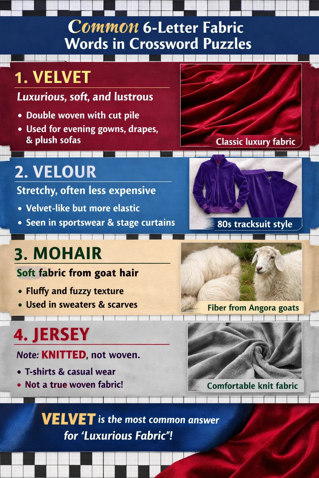 Dette er standard og vanligste 6-bokstavsord for "luksuriøst stoff."